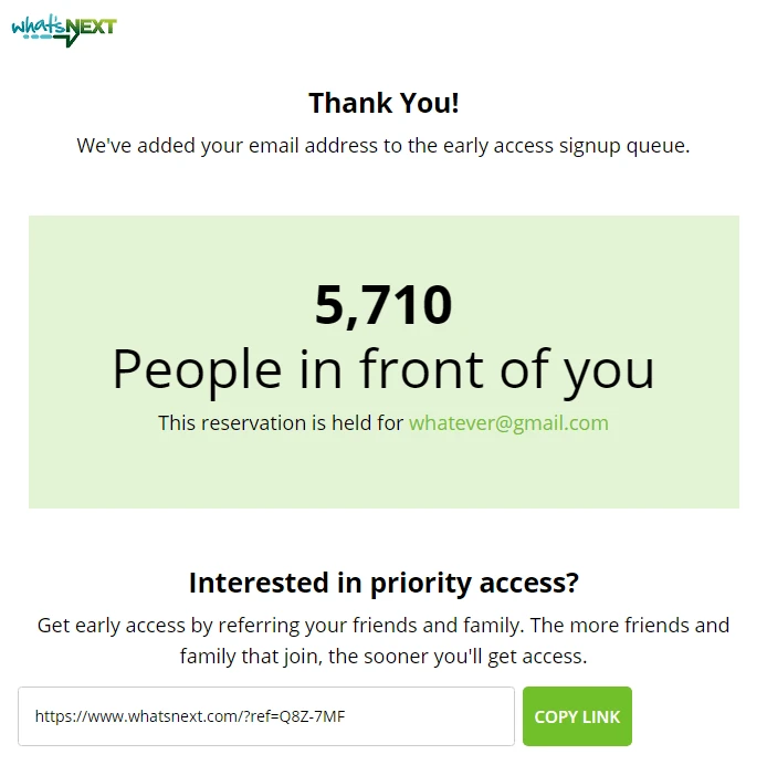 Now, imagine that this would be an offline situation, and you would really want to get access to the service faster. You’d definitely start telling your friends about the offer if you knew that 5 referred friends can push you closer to the top of the list!