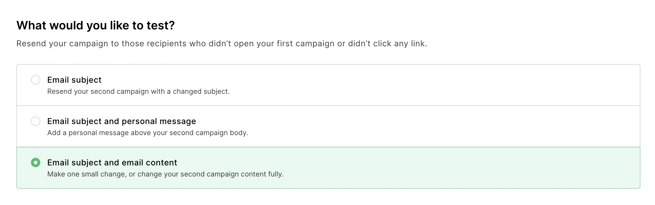 Email subject and email content: In addition to the subject, you can also change aspects of the content.