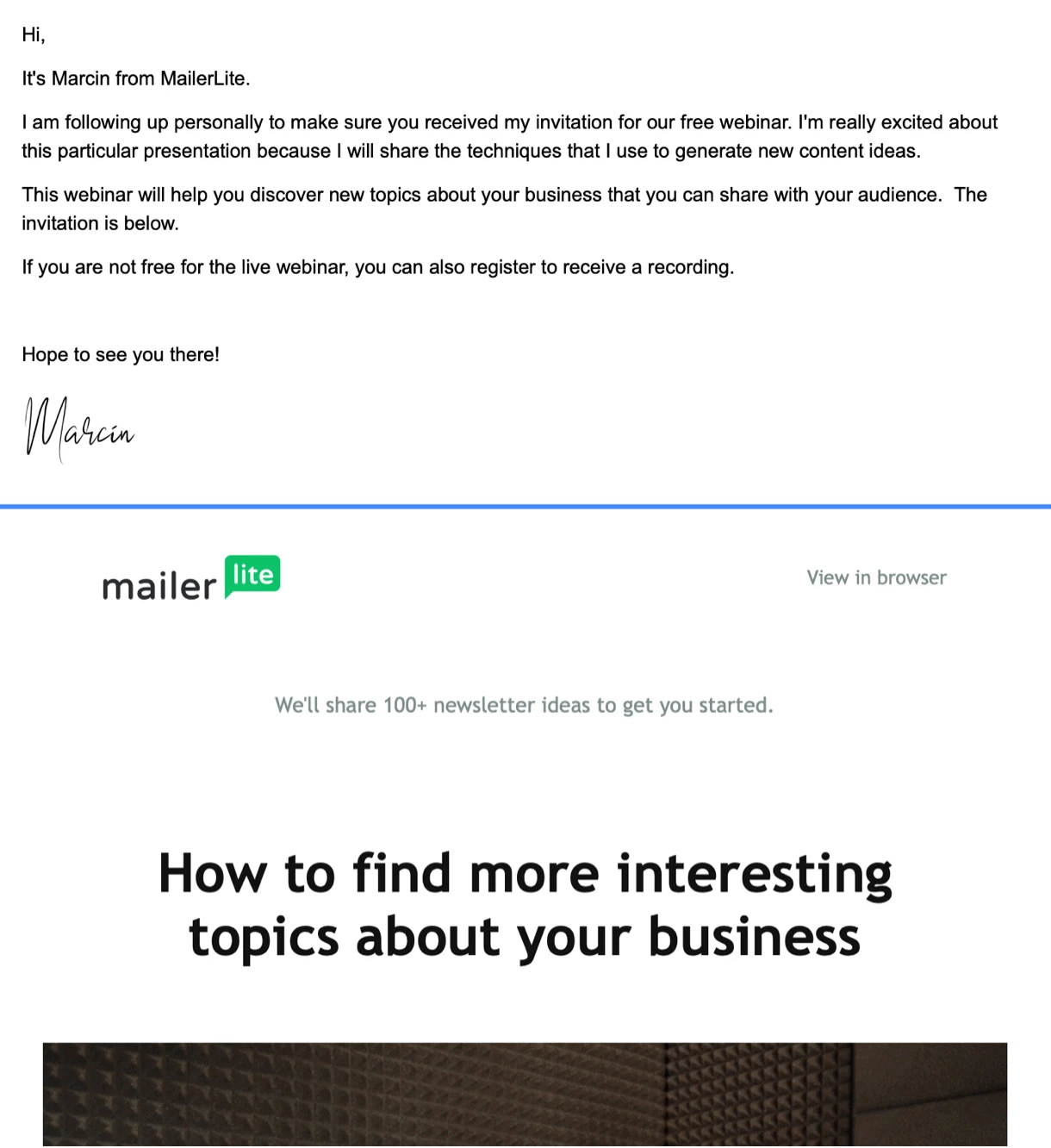 At MailerLite, we sometimes run auto resend campaigns for our webinars. Our average open rate for a webinar is lower than our normal newsletters because the topics are more specific.
