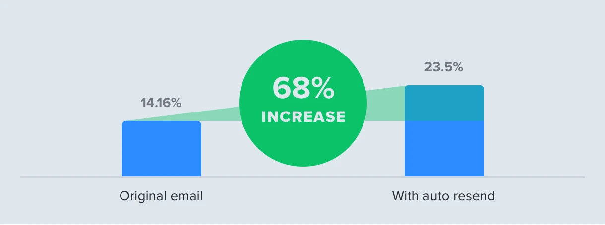 Resending emails to non-openers can increase your average open rates by 30% or even more.