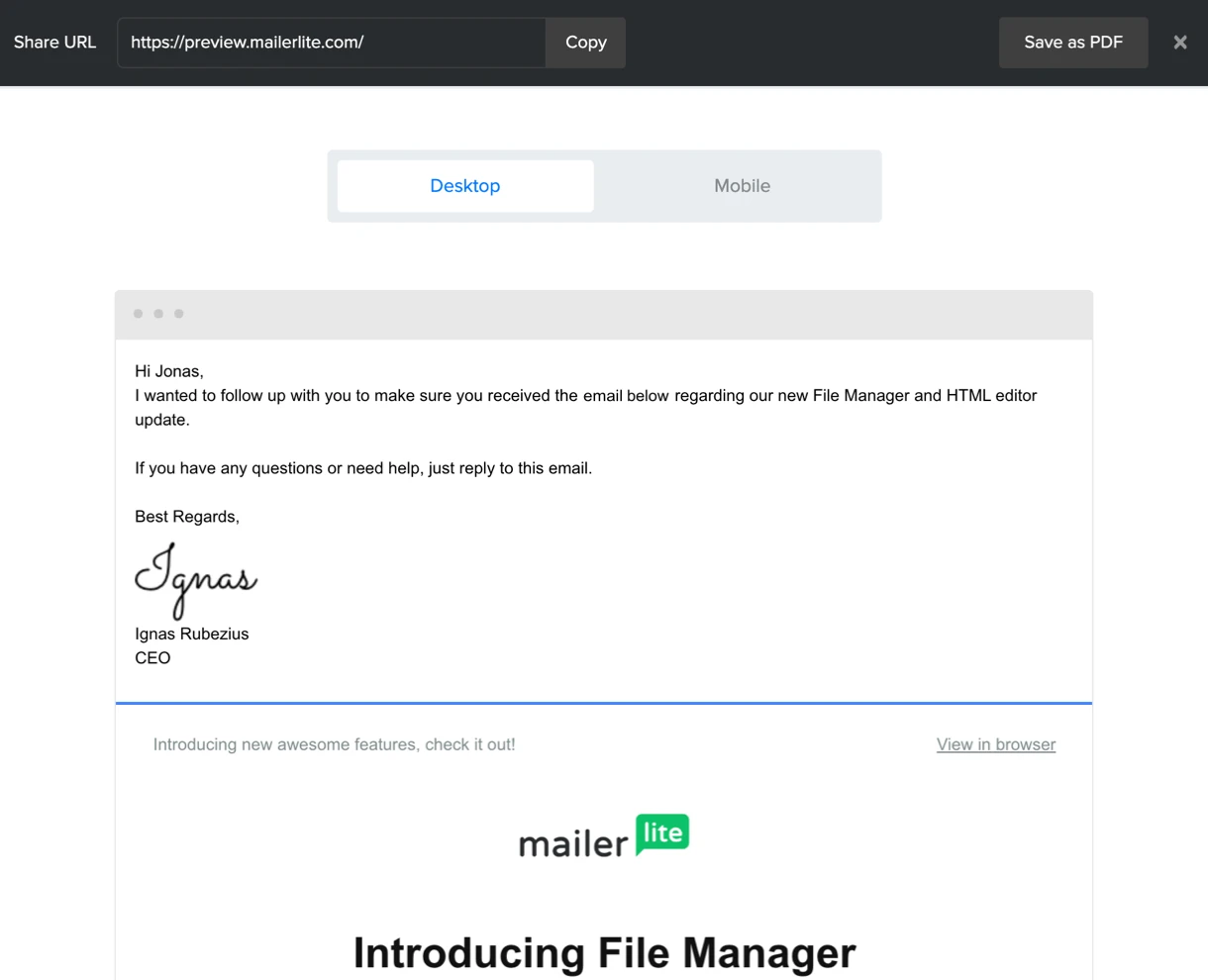 In the example above, we used the recipients' names so every customer received a personal note from Ignas, our CEO. This level of personalization works wonders for the second email.