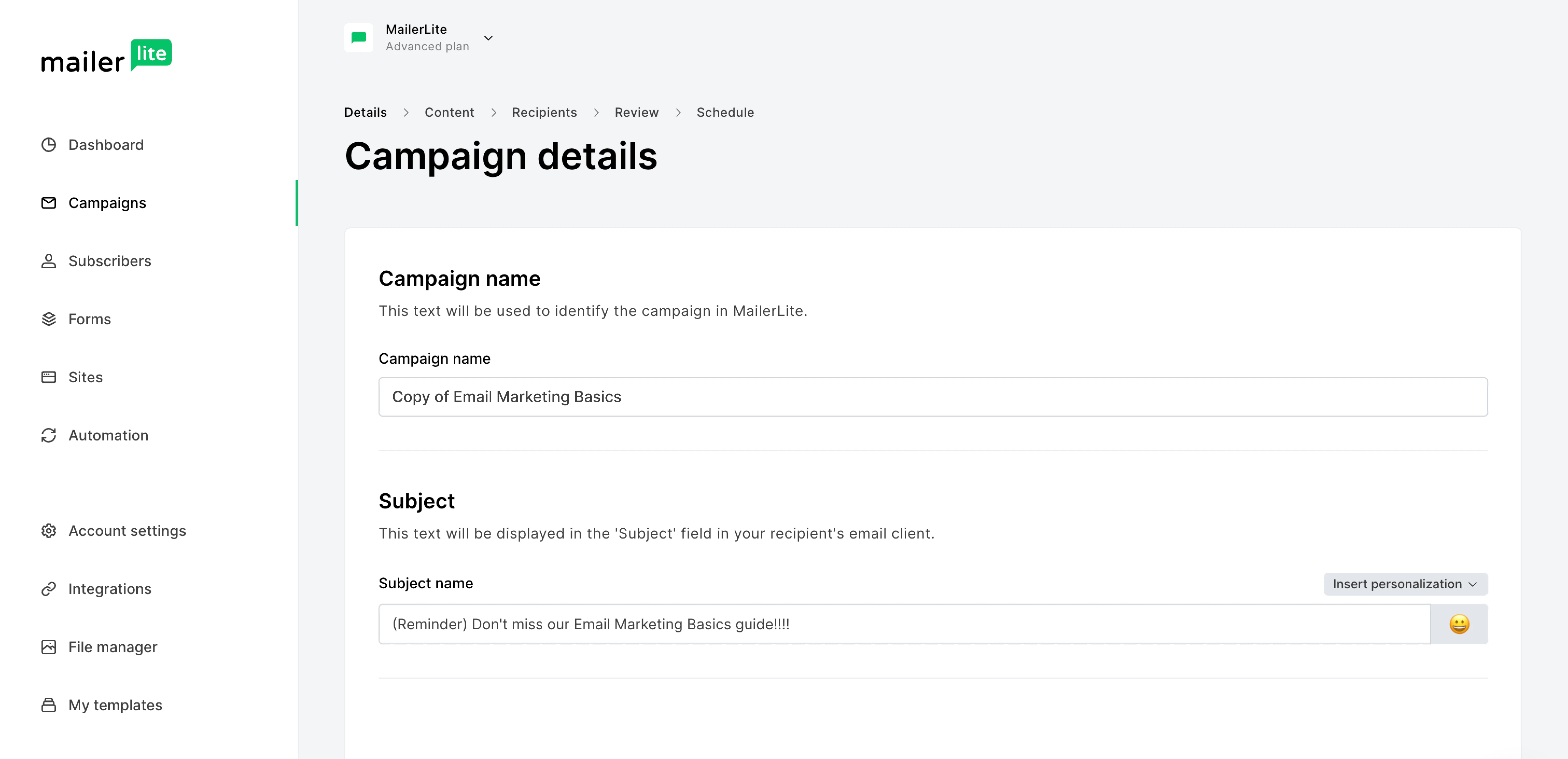 This is a new MailerLite feature that lets you resend campaigns to people who join your list after you first sent the campaign.