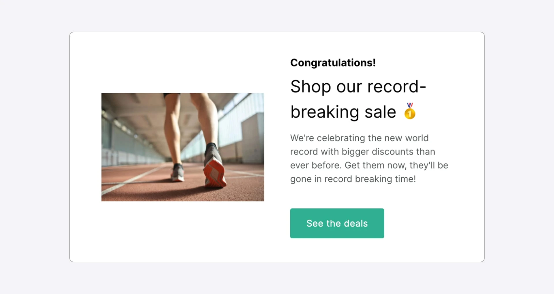 From global athletic competitions to season finales, major sporting events capture the world's attention. Boost sales and make the most of the inevitable sporting fever by adding sports-themed content to emails.