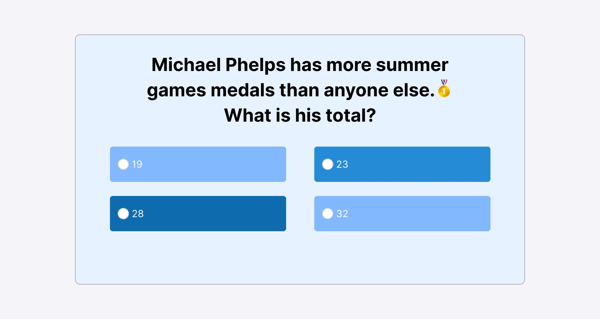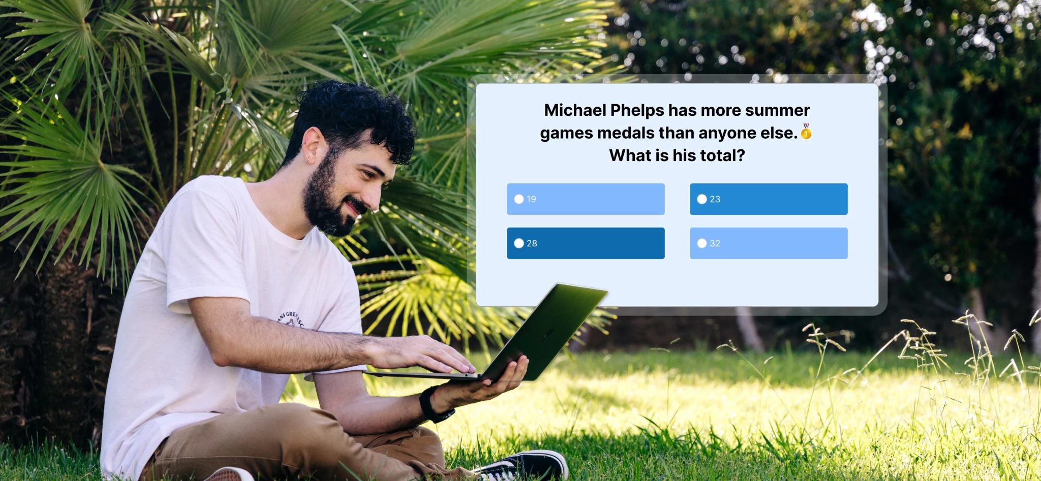 MailerLite customers can easily create an email quiz using our quiz block. Just drag the block into your email, customize the design and then specify the questions and the correct answers.