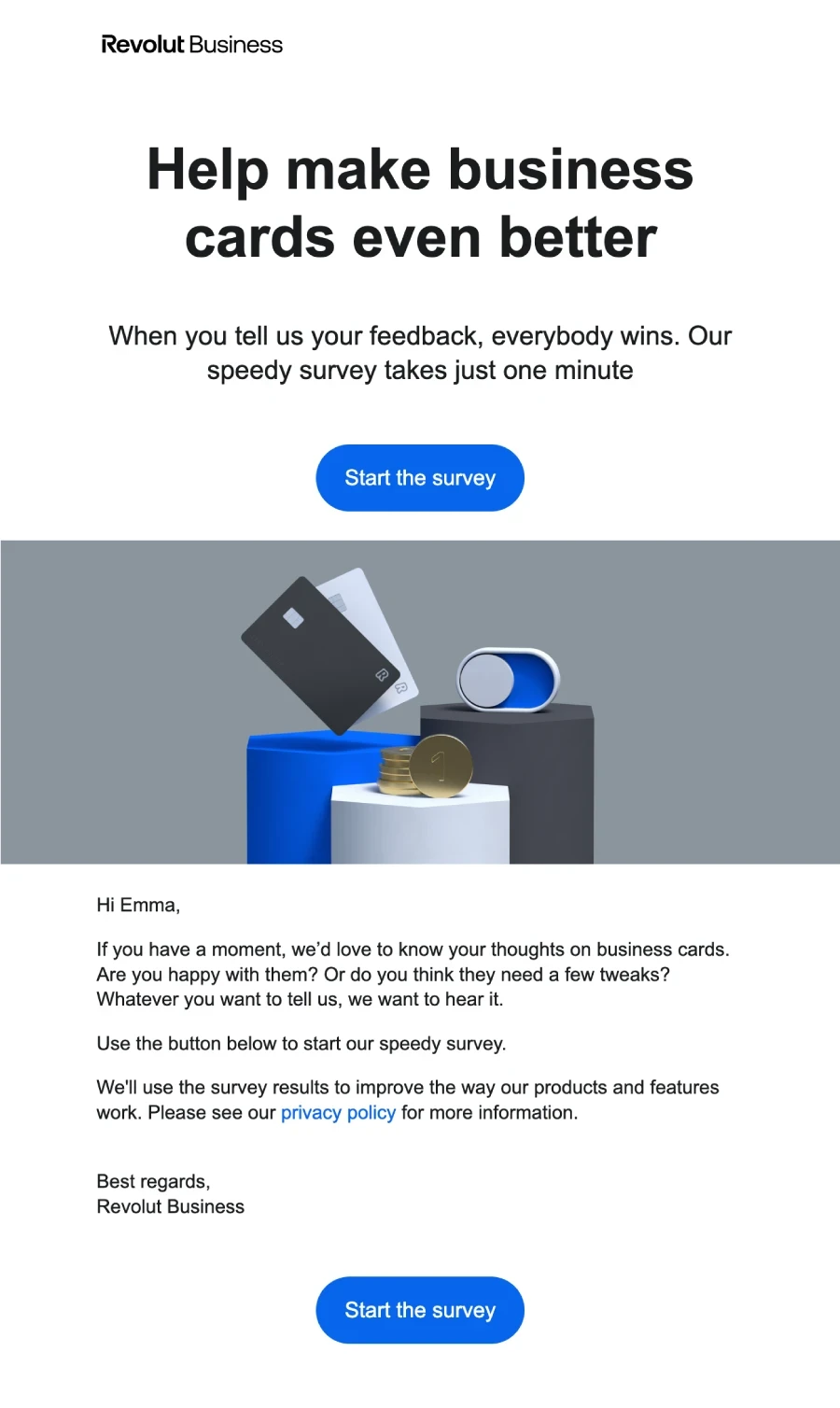 You can gain valuable customer insights by asking for feedback directly within your emails, by embedding an email survey or a quick poll into your summer newsletter template.