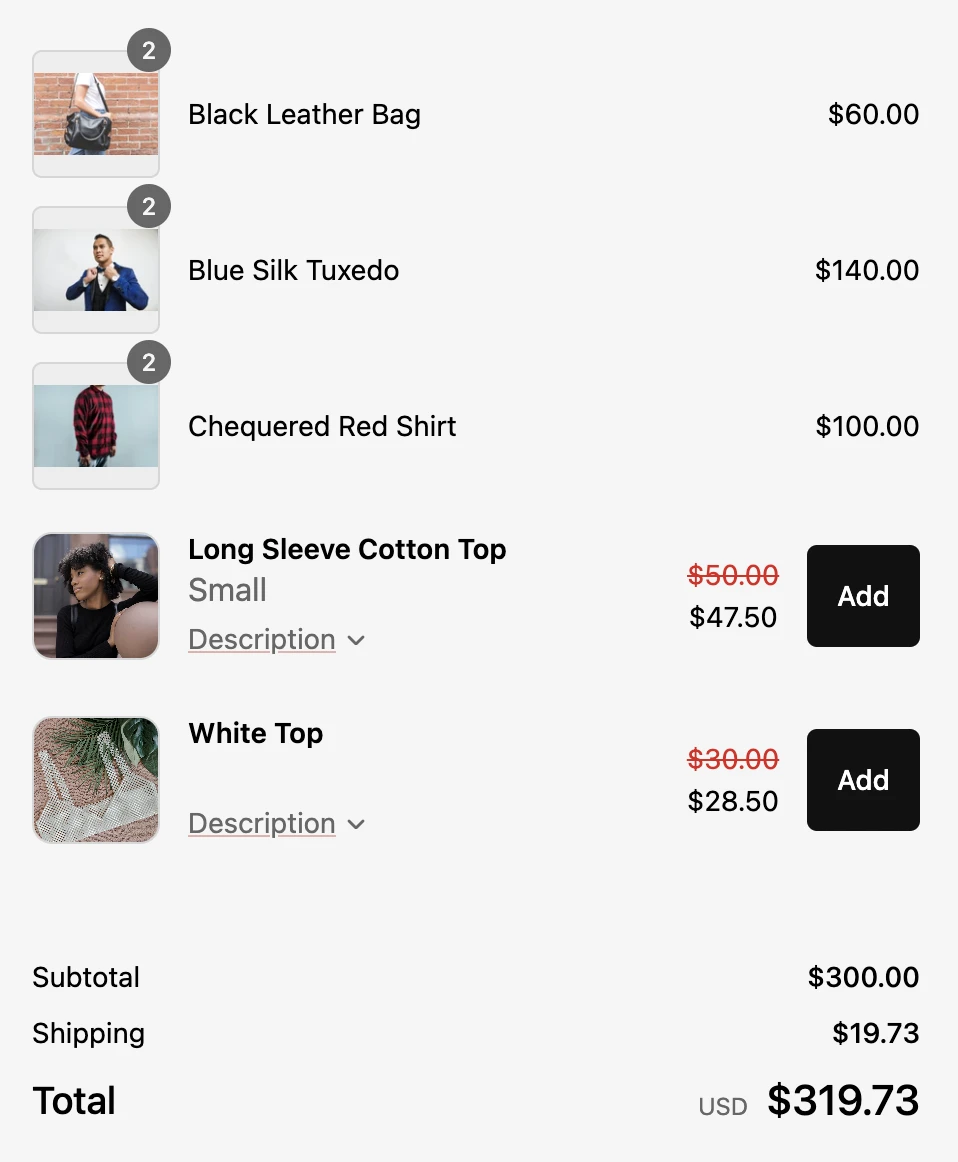 Make sure that any upsells are clearly visible and be transparent about the extra costs associated with them. Let customers know what their options are, and highlight the key benefits of purchasing the upsell product or option. Use persuasive copy, high-quality images, and clear CTAs (Calls-To-Action).