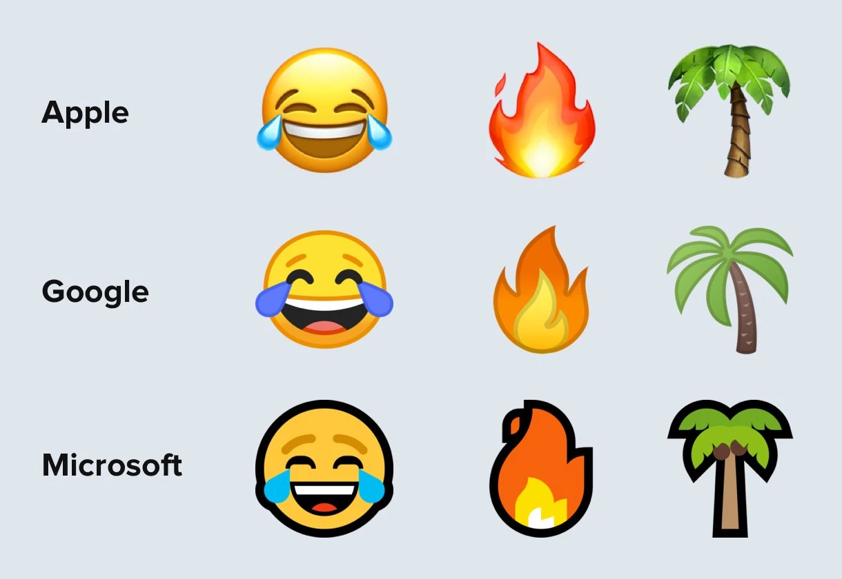 Outlook for Windows and Yahoo! Mail may show simplified black and white versions of emojis, while Gmail takes its own designed approach. Normally mobile devices adjust an emoji’s look to match their brand image.
