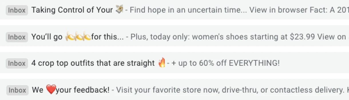Remember to always change just one single element. First test one subject line with an emoji and one without. Then test different types of emojis. Then test the amount of emojis. Rinse and repeat until you start seeing a pattern of what does and doesn’t resonate with your audience.