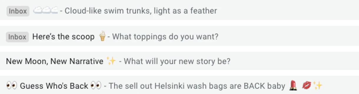 The newsletter subject below doubles down on emojis by using emojis in their subject and preheader. At first glance, it’s hard to grasp what the email is about. Using this many emojis can either work to your advantage or disadvantage. The answer is in the A/B test 🕵️♀️.