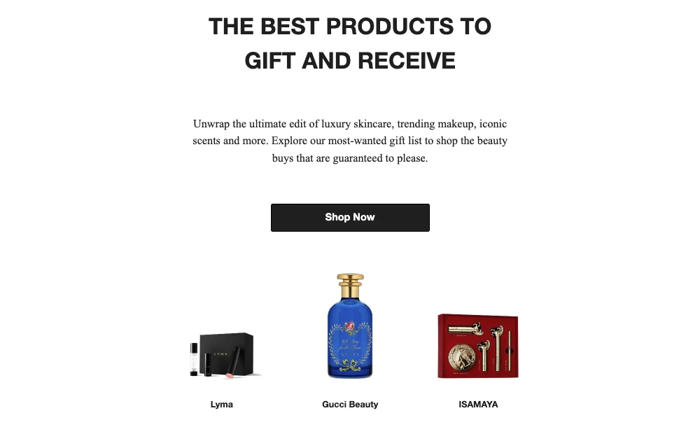 Make sure your recipients know what you want them to do by adding a CTA button asking them to take next steps. Use text like “Redeem Offer,” “Shop Gift Cards” or “Shop Now.”