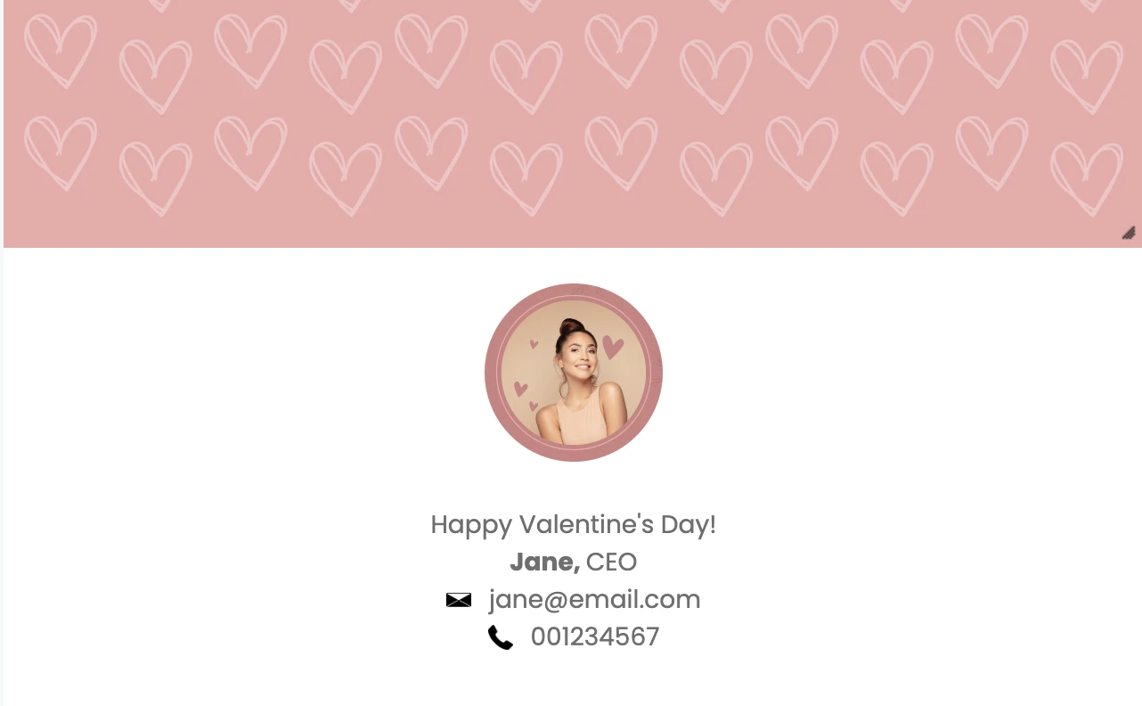 In this example, Jane ties the newsletter theme into her profile picture and finishes the email with a Happy Valentine’s Day email signature.