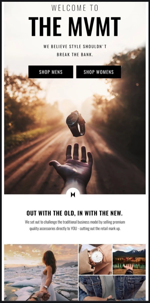 Premium watches, sunglasses, and accessories store MVMT have a commendable initial email.