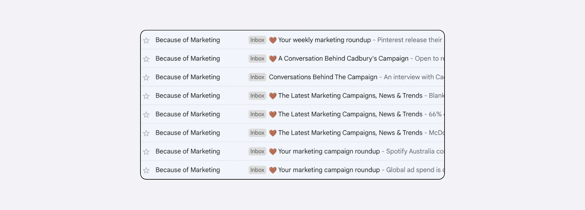 Rachael Higgins, the voice behind Because of Marketing, has over 350,000 social followers across all channels. But email gives her something these platforms don’t: A direct link to the people who follow her.