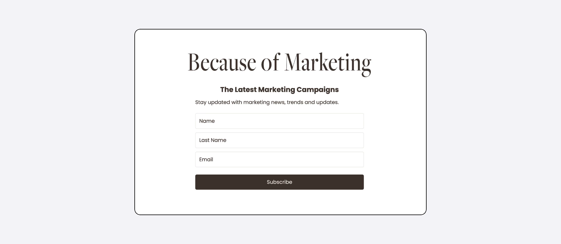 Rachael uses several strategies to get people to join her list. They all involve directing people to a dedicated newsletter signup page or an email signup form on the Because of Marketing website.
