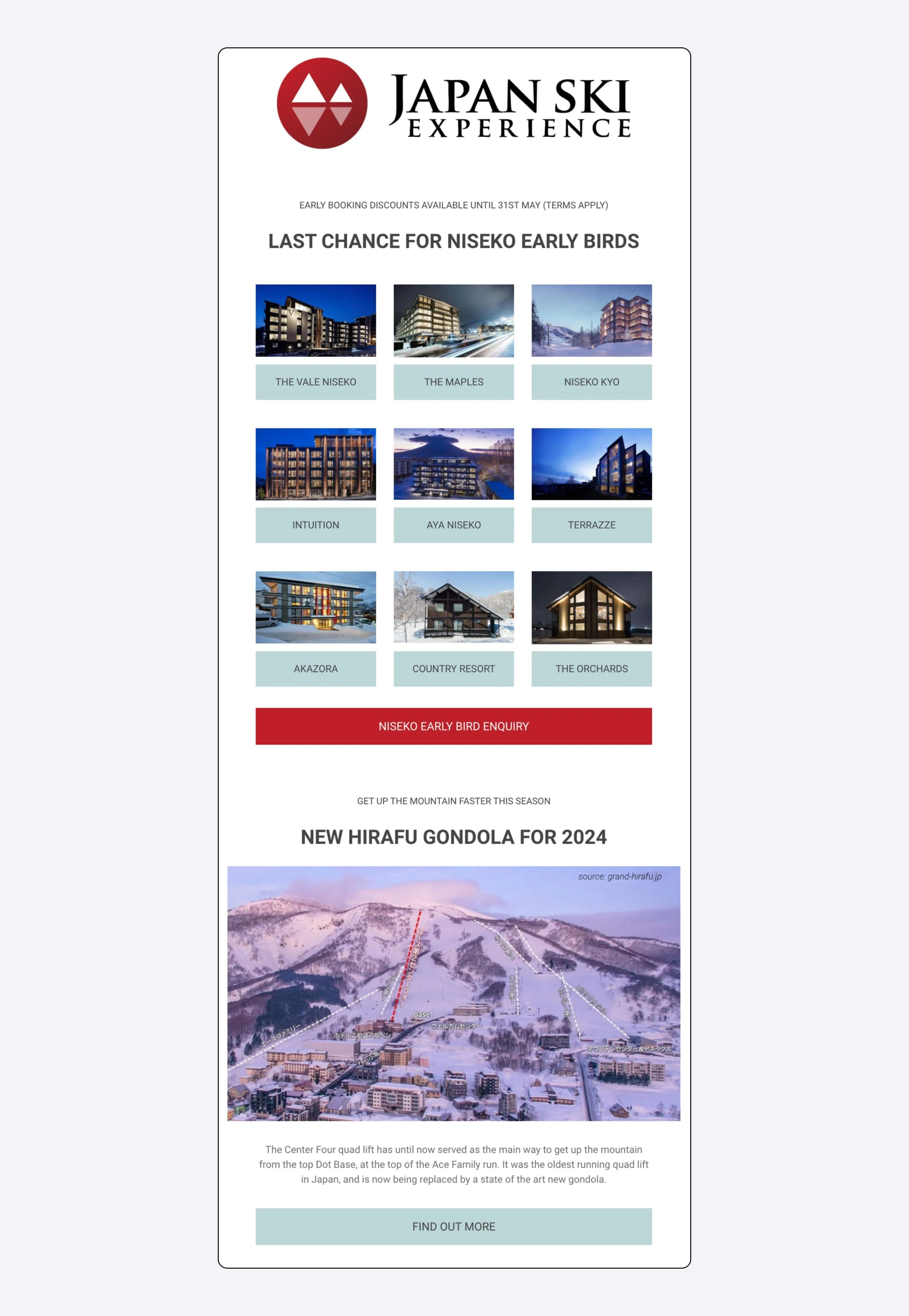 This allowed them to create an impactful email marketing strategy that effectively sells their ski experiences.