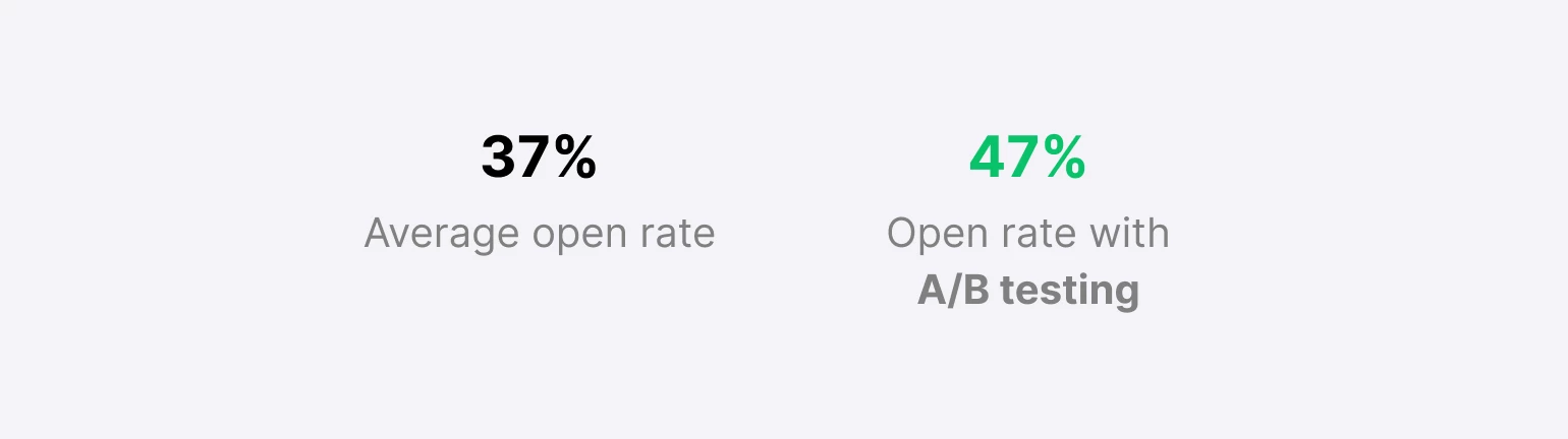 Graphic showing the average open rate of 37% vs open rate with A/B testing of 47%