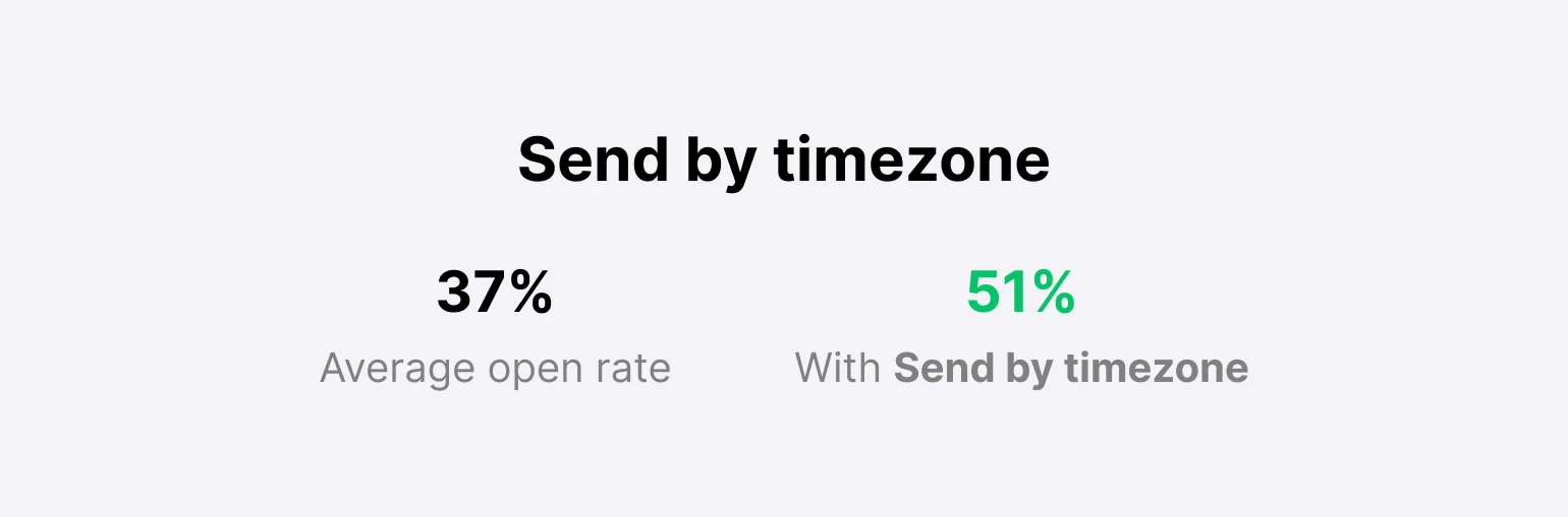 Sending at the right time is hard when you have a global audience. Emails sent at 9 AM in London go out at 1 AM to those in LA. Our Send by timezone feature solves this problem by automatically sending emails at the same local time no matter where the subscriber is located.