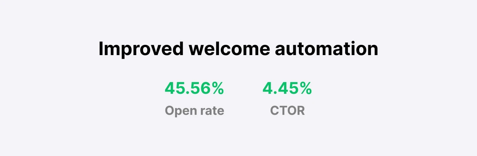 Nicole was able to significantly improve the impact of these flows with this insight. Open rates on Partnero’s welcome campaigns almost doubled from 24% to 45.56%, while CTOR increased from 3.83% to 4.45%.