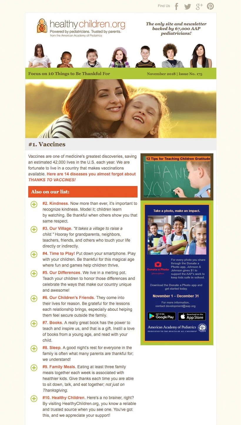 HealthyChildren.org takes advantage of the holiday season to promote Thanksgiving tips as well as promote a photo contest to raise money for charity.