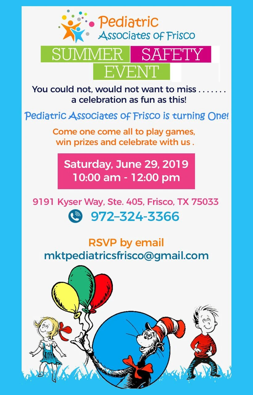 Or better yet, create and promote your own events. Pediatric Associates of Frisco created a Summer Safety Event and sent this fun and colorful newsletter to promote it.