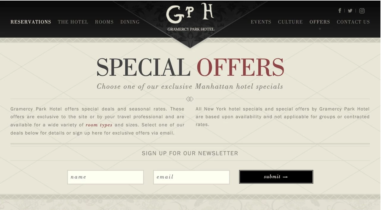 Here's an example of an embedded form on the website of Gramercy Park Hotel.