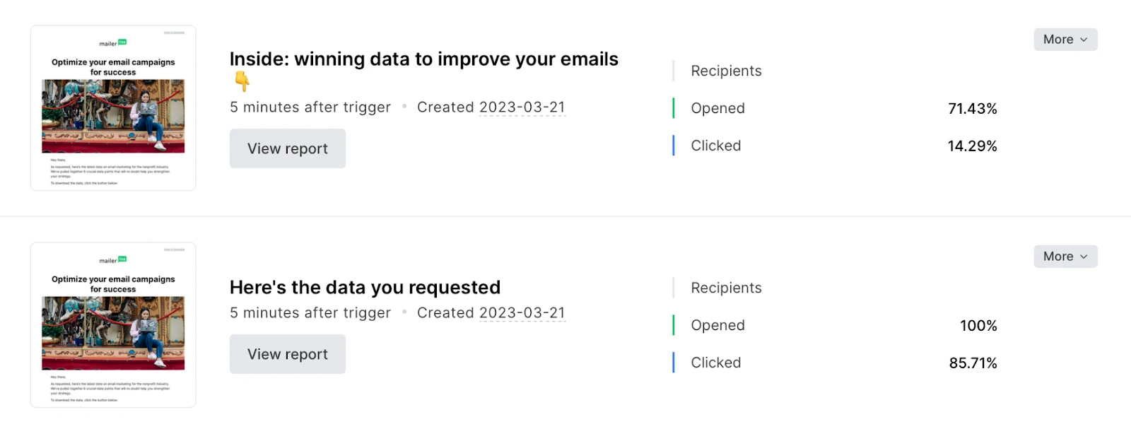 Here’s an example of an A/B test that we ran at MailerLite. For this campaign, we tested two subject lines: one was longer, more descriptive, and contained an emoji, while one was short and to the point.