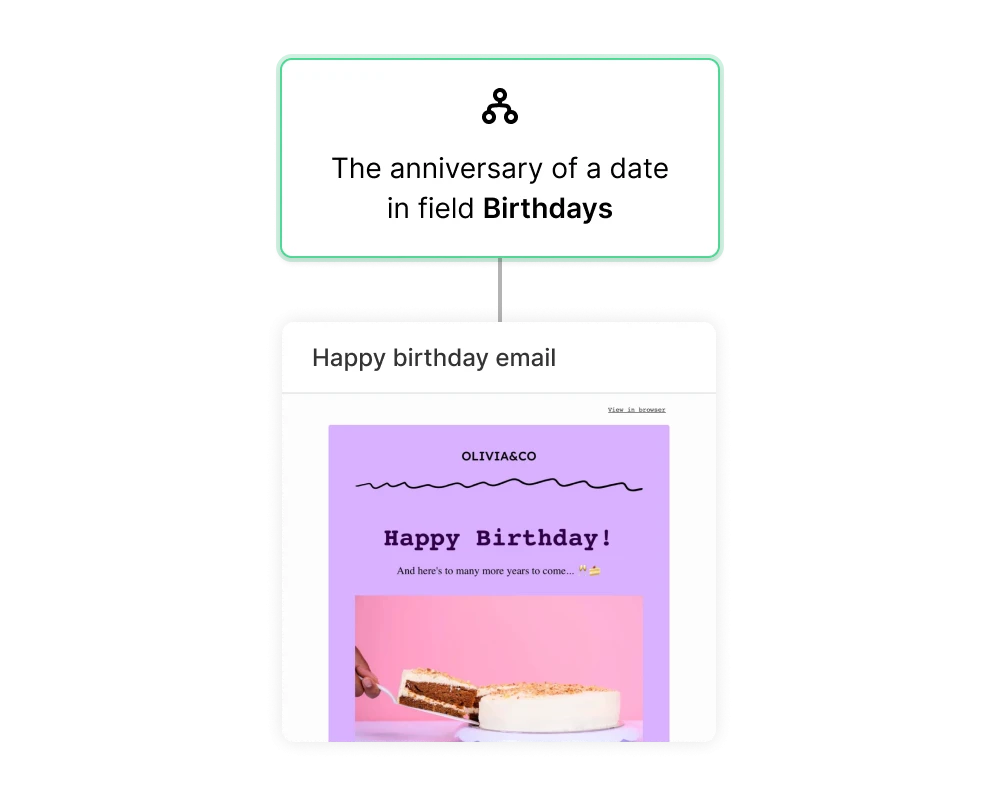 Make students and alumni feel special by sending an email celebrating a graduation date, enrollment anniversary, and their birthday.