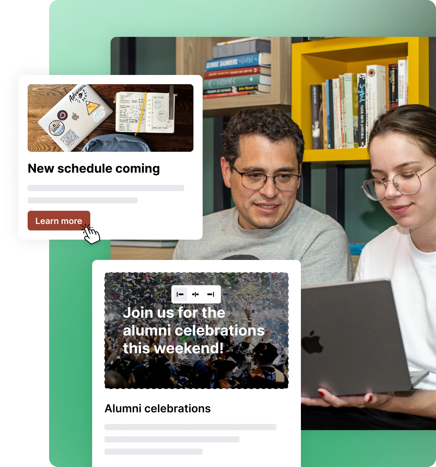 With our Drag & drop editor, any staff member can craft stunning newsletters. Choose from pre-designed email templates or use customizable content blocks to build a newsletter that captures the spirit of your school community.