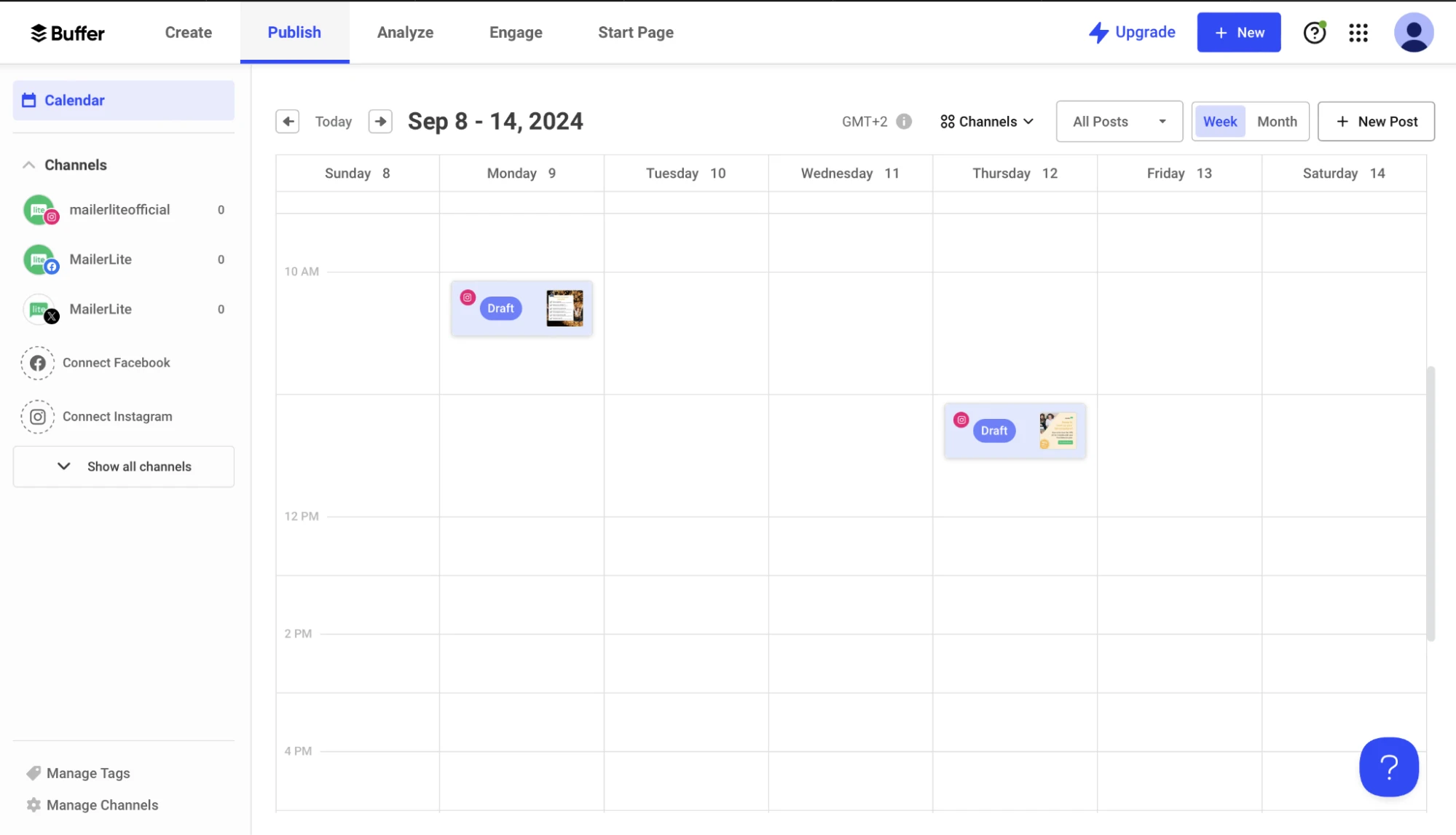 Los análisis de Buffer son limitados y le faltan funciones avanzadas como la monitorización. Tampoco puedes acceder a algunas funciones para programar publicaciones; por ejemplo, no puedes etiquetar un perfil personal al programar una publicación en LinkedIn.