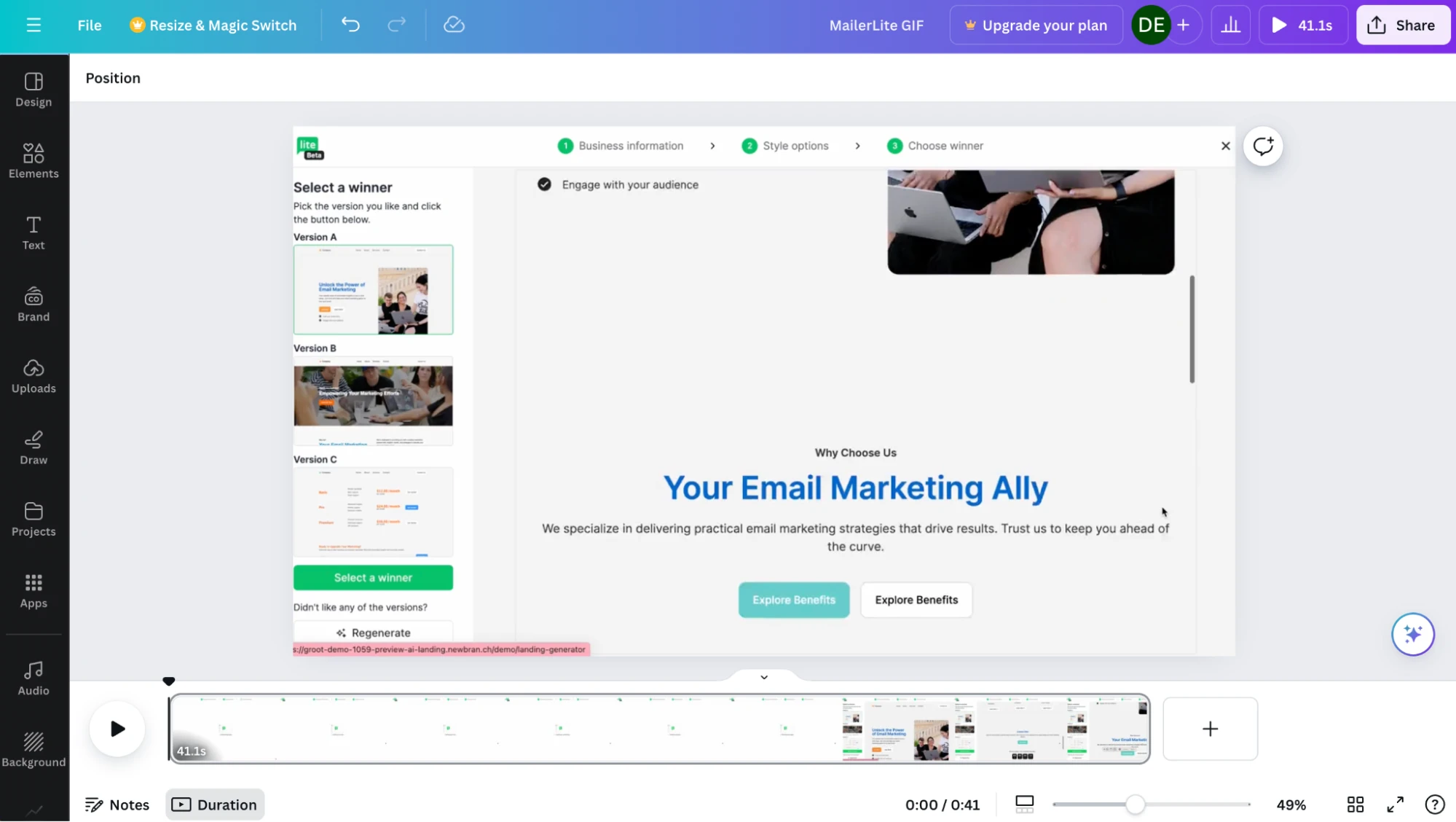Además, si quieres empezar con una landing page, puedes utilizar nuestro generador con IA para crear una página y luego editarla según tus necesidades.