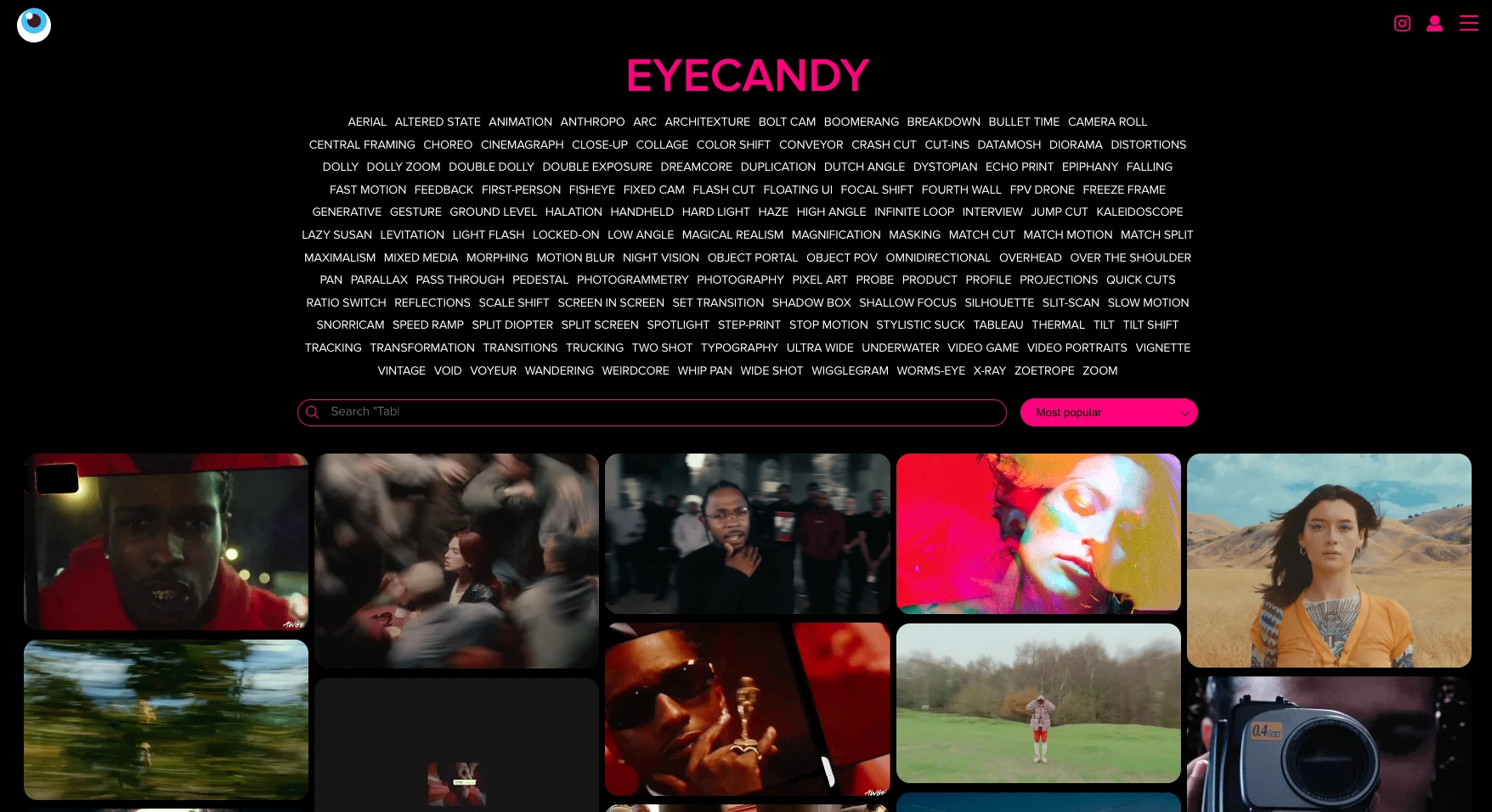 Eyecandy es un tesoro de técnicas cinematográficas. Ofrece una biblioteca organizada que muestra diversos estilos visuales, transiciones, movimientos de cámara y enfoques de edición.