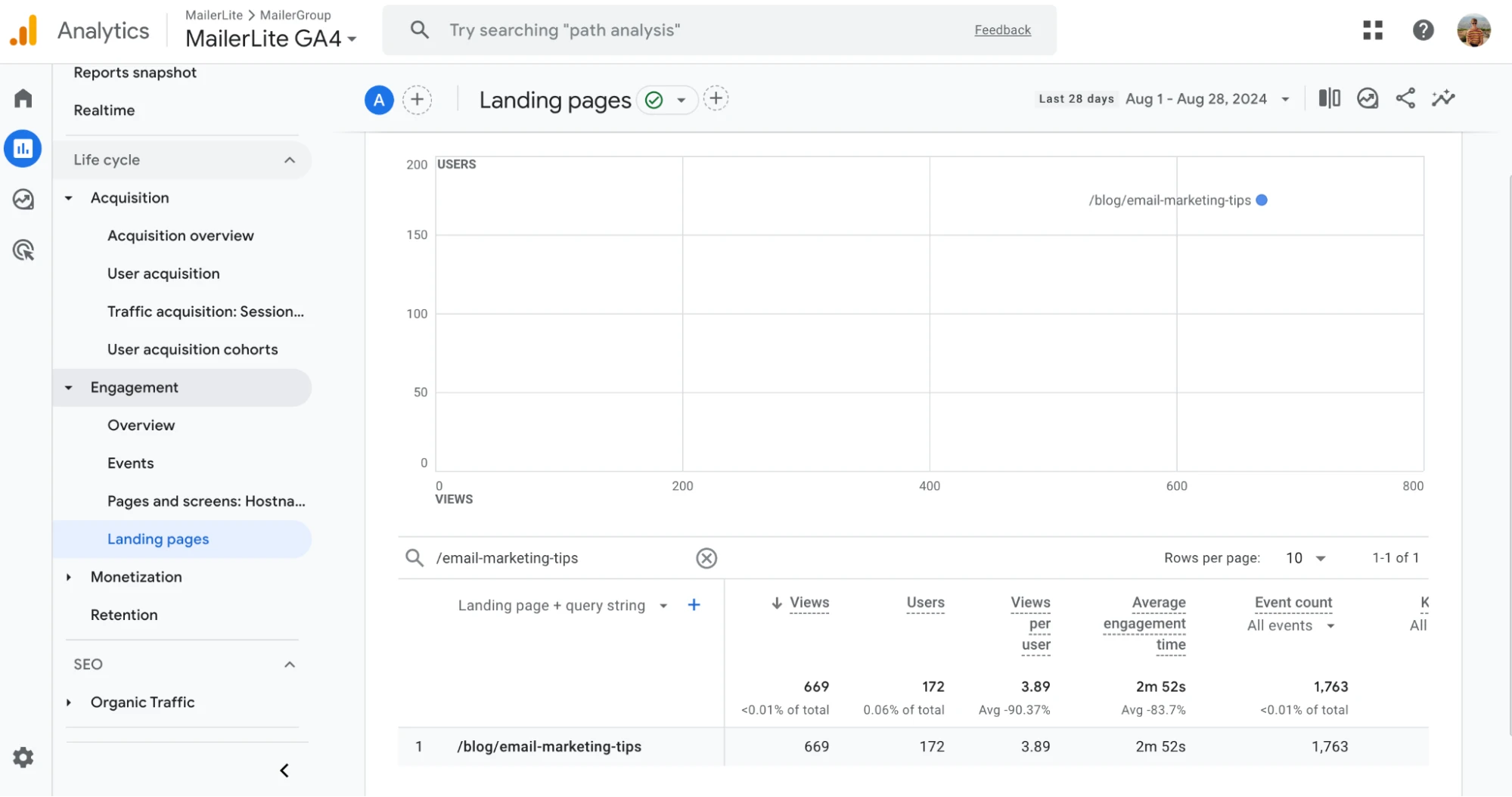 Google Analytics es nuestra principal plataforma de análisis. El equipo de marketing de contenidos la utiliza para hacer un seguimiento del rendimiento tanto de artículos como de páginas, a fin de verificar cuáles obtienen mucho tráfico y un alto compromiso.