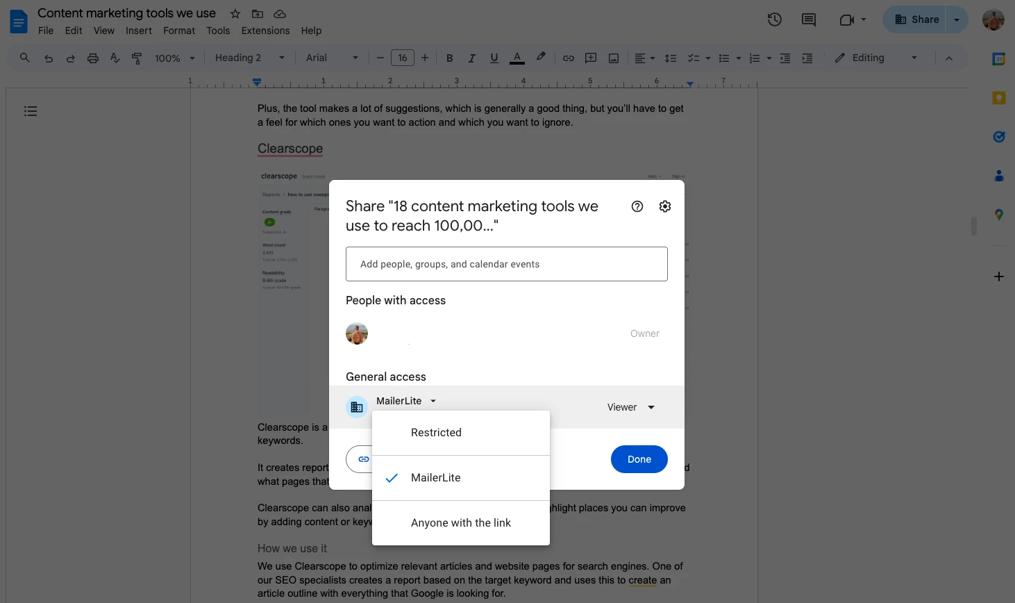 Todo el mundo en nuestra organización utiliza Google Workspace. Nuestros equipos de marketing de contenidos escriben artículos, publicaciones en redes sociales y correos electrónicos en Google Docs, utilizando las funciones de comentar y sugerir durante el proceso de revisión.