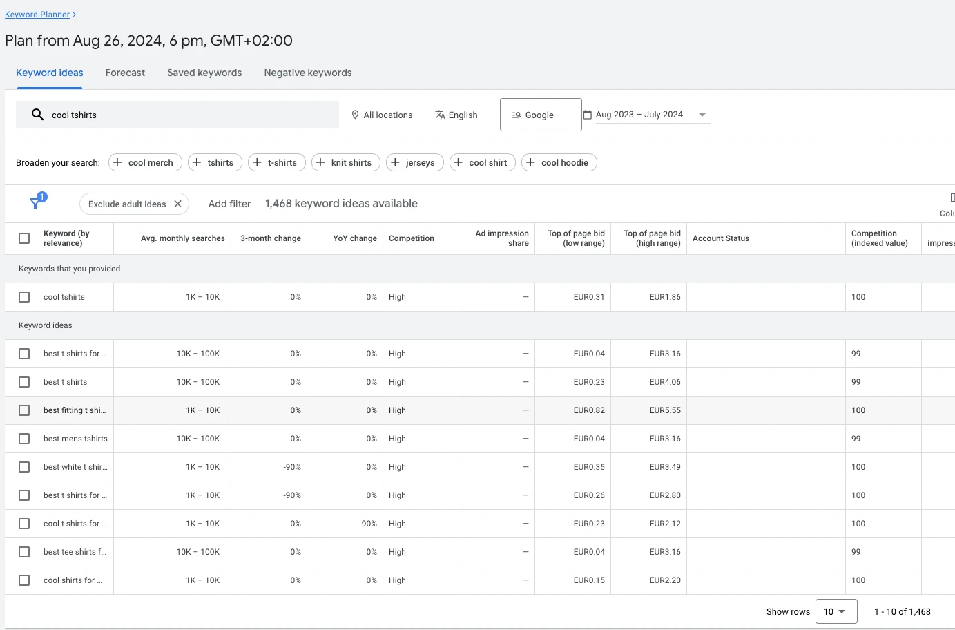 Nuestro equipo SEO utiliza Keyword Planner para la investigación de palabras clave y para detectar tendencias y previsiones.