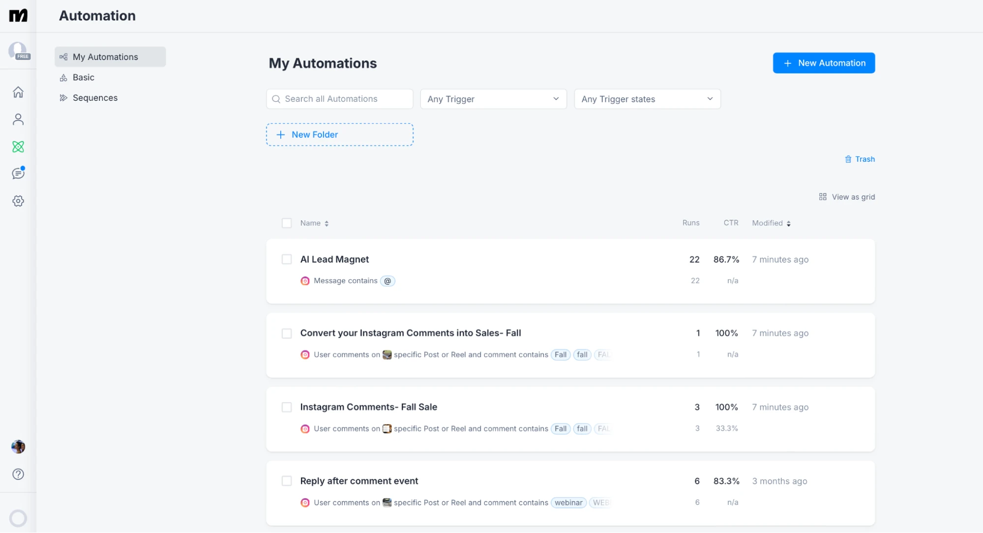 Si alguna vez has visto que una cuenta pide a la gente que "comente debajo de una publicación" para recibir algo a cambio, probablemente hayan utilizado ManyChat para automatizar ese proceso.