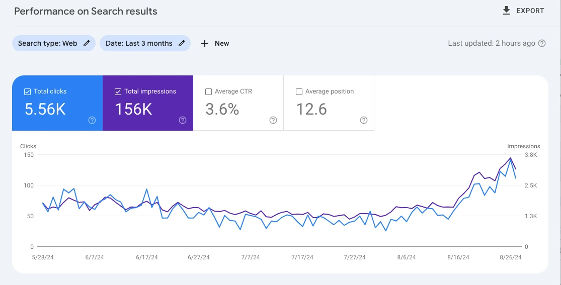 Nuestro equipo de SEO utiliza Google Search Console para ver para qué palabras clave se clasifica nuestro contenido y hacer un seguimiento de la visibilidad del sitio web en Google. También destaca los problemas técnicos que podrían afectar a la indexación o a la visibilidad en las búsquedas en cuanto se producen.