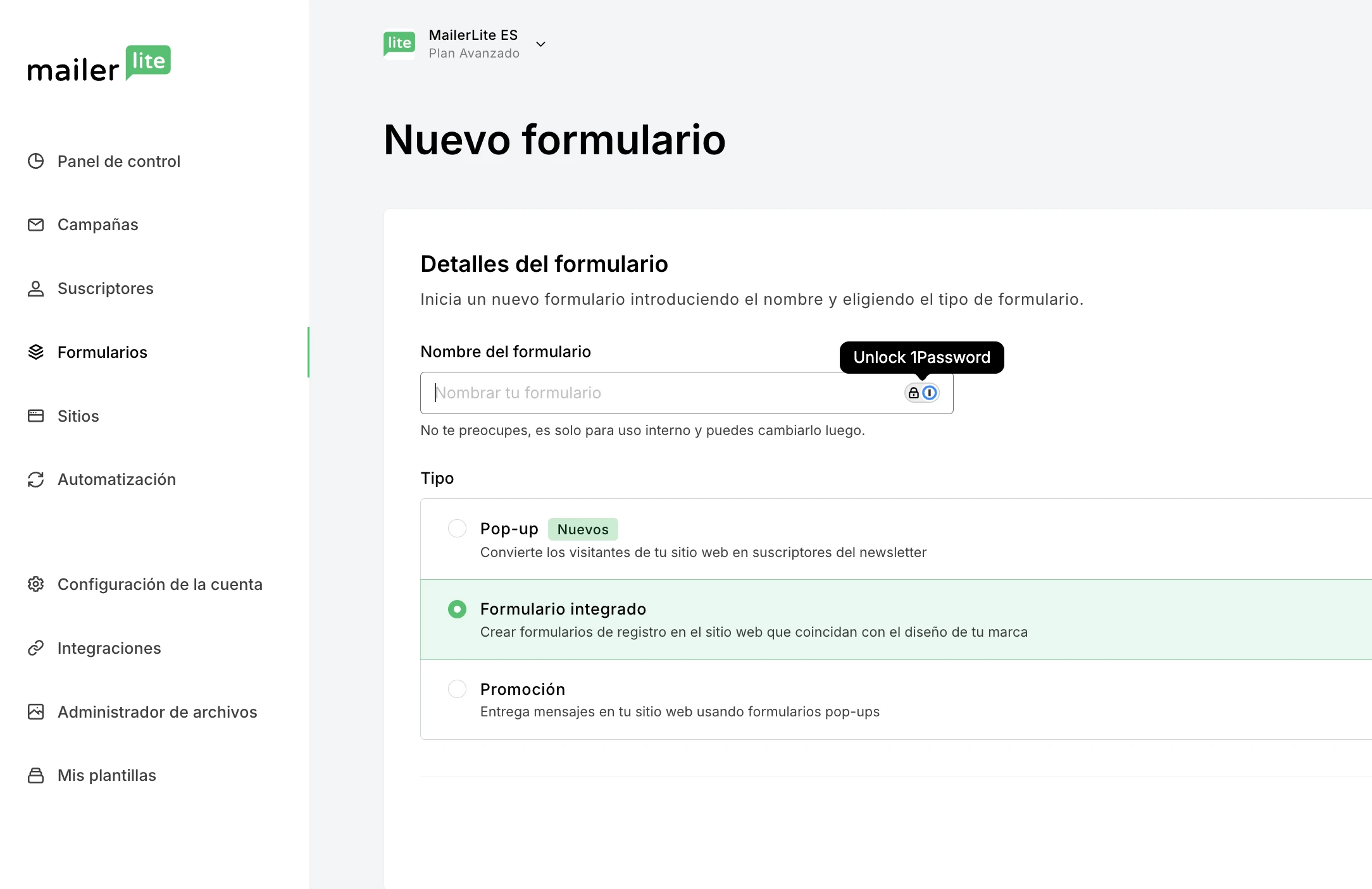 💡 También puedes usar los formularios pop-up, barras flotantes y formularios integrados, todo desde una misma plataforma.