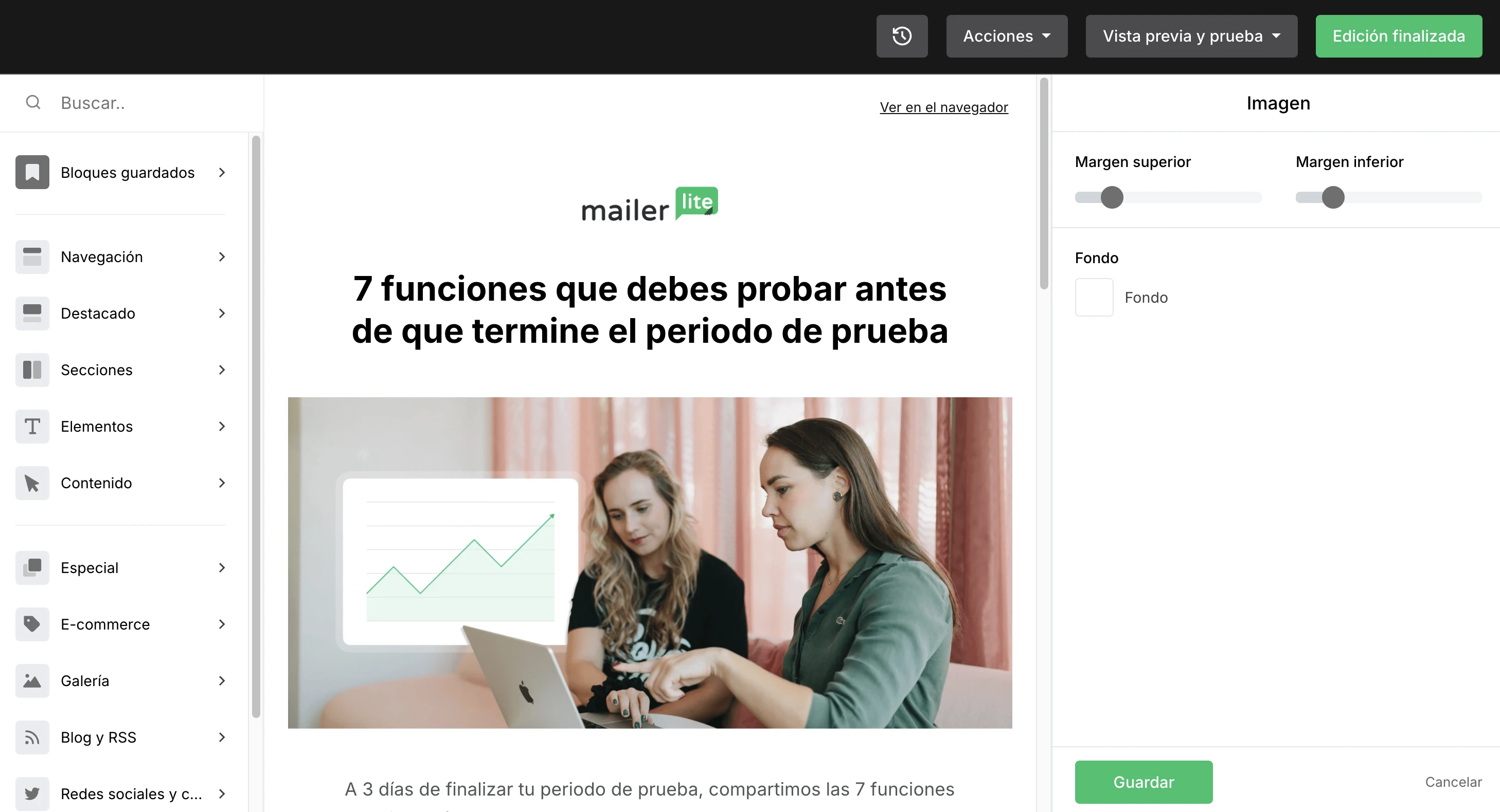 Podrás compartir contenidos exclusivos: Atrás quedaron los días en que se enviaba a todo el mundo la misma información. Ahora puedes ofrecer contenidos personalizados seleccionando quién verá determinadas secciones de tu mensaje. Por ejemplo, puedes compartir cupones por correo electrónico para los clientes fieles, o añadir contenido adicional para las personas que tienen una suscripción del newsletter de pago.