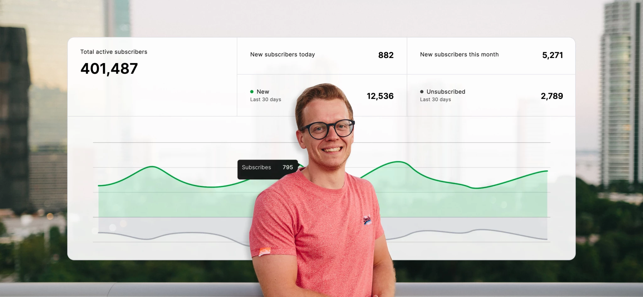 Con MailerLite, puedes ver el número total de nuevos suscriptores en un día determinado. Busca días o periodos con un alto índice de crecimiento de la lista para identificar las estrategias que llevan a la gente a unirse a tu lista. Fíjate también en el número de bajas para ver qué es lo que no funciona.