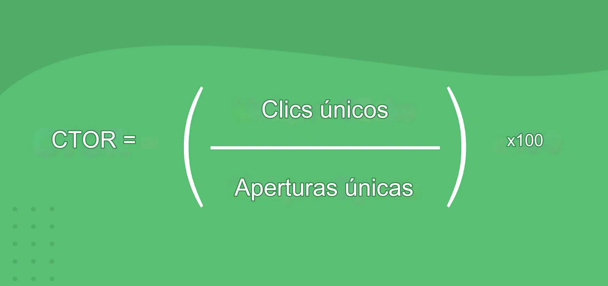 Tu tasa de clics por apertura (CTOR por sus siglas en inglés) es el porcentaje de suscriptores que abrieron el newsletter e hicieron clic en un enlace de su interior.