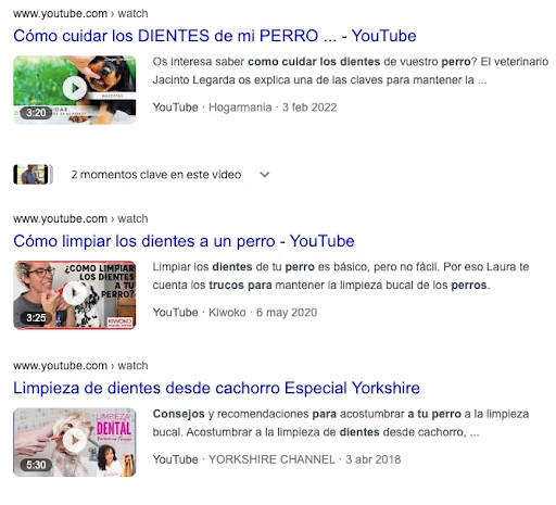• Revisa la SERP real de tu keyword clave antes de crear la pieza: si dominan los vídeos, incorpora uno; si se muestran resultados enriquecidos, evalúa el schema apropiado.