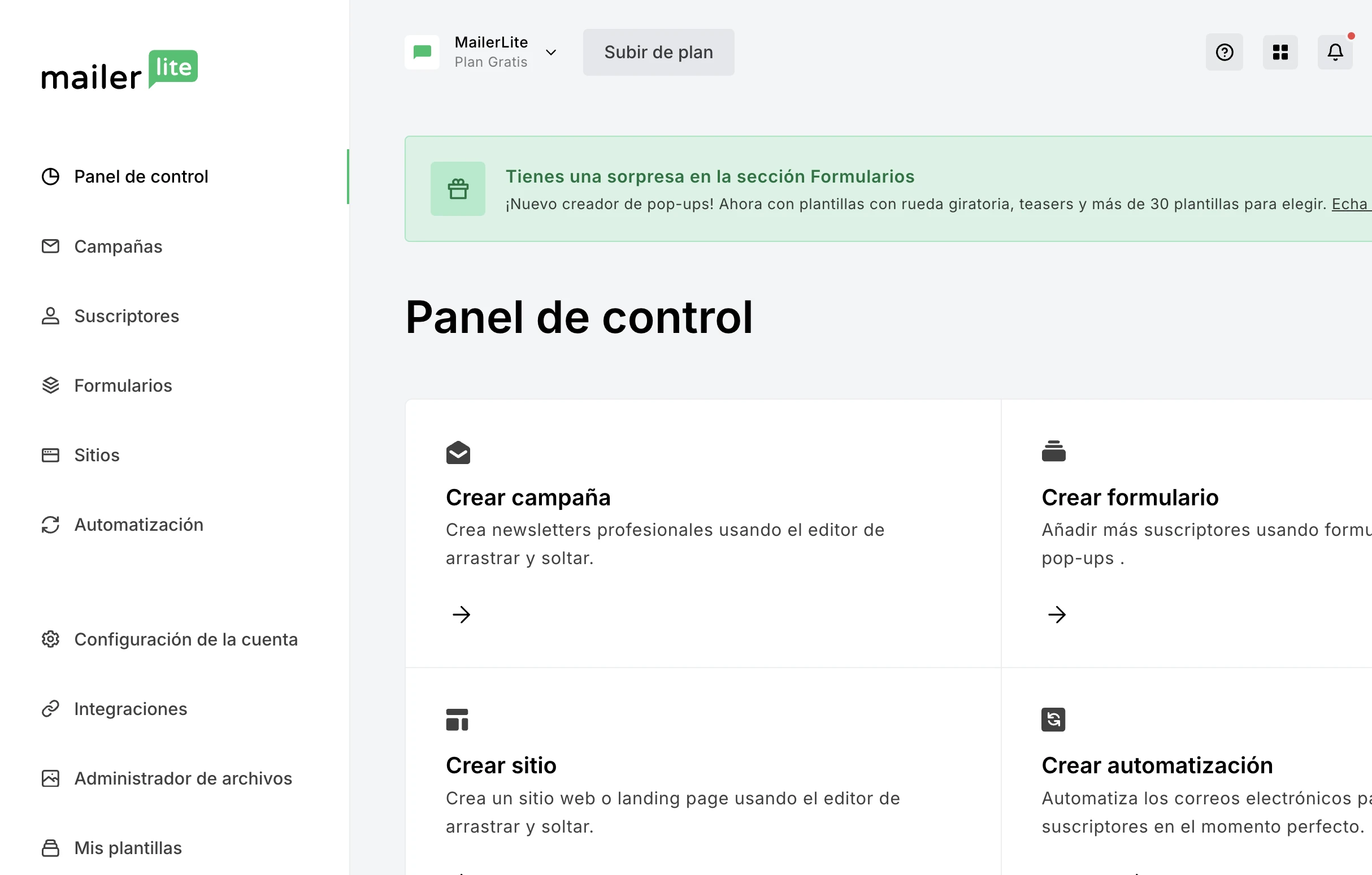 Si quieres saltarte los pasos anteriores y contratar la plataforma con mejor entregabilidad, un amplio conjunto de funciones y planes más económicos, entonces MailerLite es para ti. Haz clic en el botón de abajo para suscribirte gratis y probar el software hoy mismo.