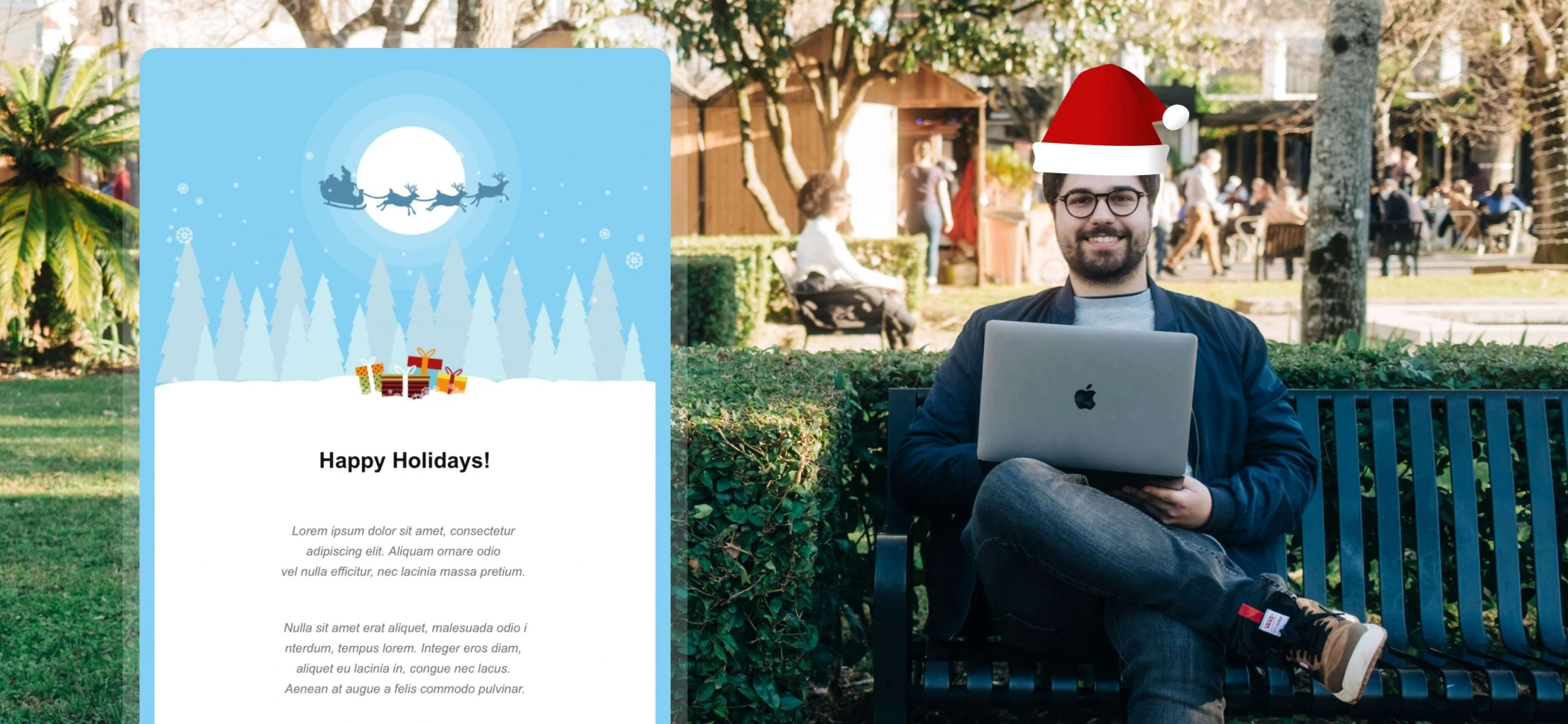 Ya sea que estés por crear una campaña navideña de correo electrónico, una landing page o un pop-up, no hay necesidad de empezar de cero.