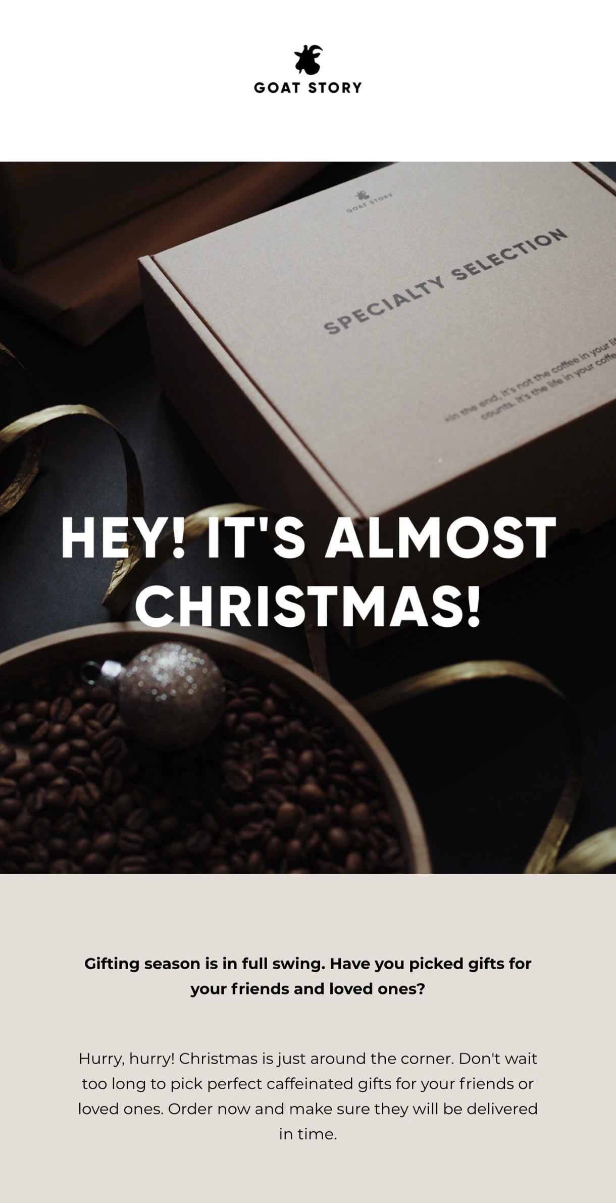 Este tipo de correo de Navidad es excelente para captar la atención de tu audiencia en un nivel emocional profundo.