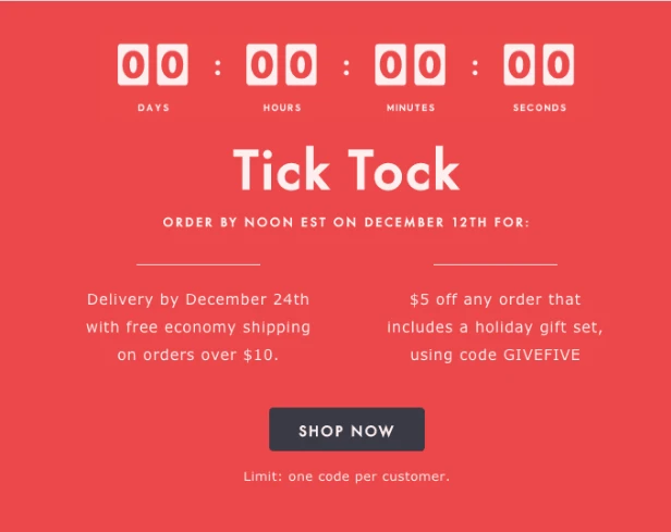 La sensación de urgencia es fundamental cuando se acerca la Navidad. Esta campaña se centra en la escasez o en el tiempo límite.