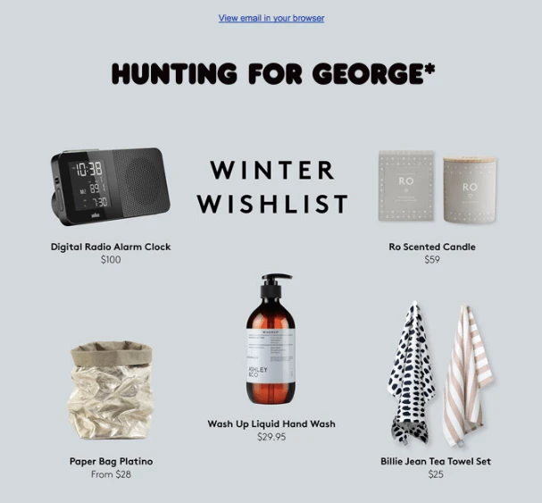 Este no debe ser idéntico a los emails de carrito abandonado habituales, sino que debe tener un toque festivo.