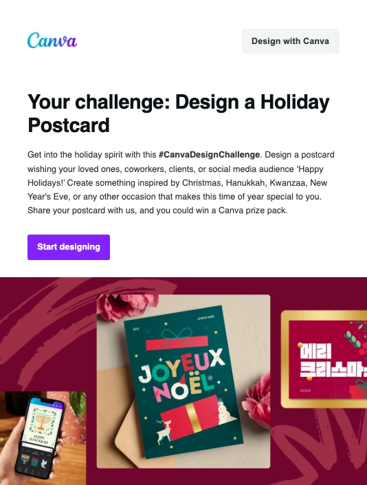 Los concursos navideños son una forma divertida de generar engagement y hacer que tu newsletter de Navidad destaque.