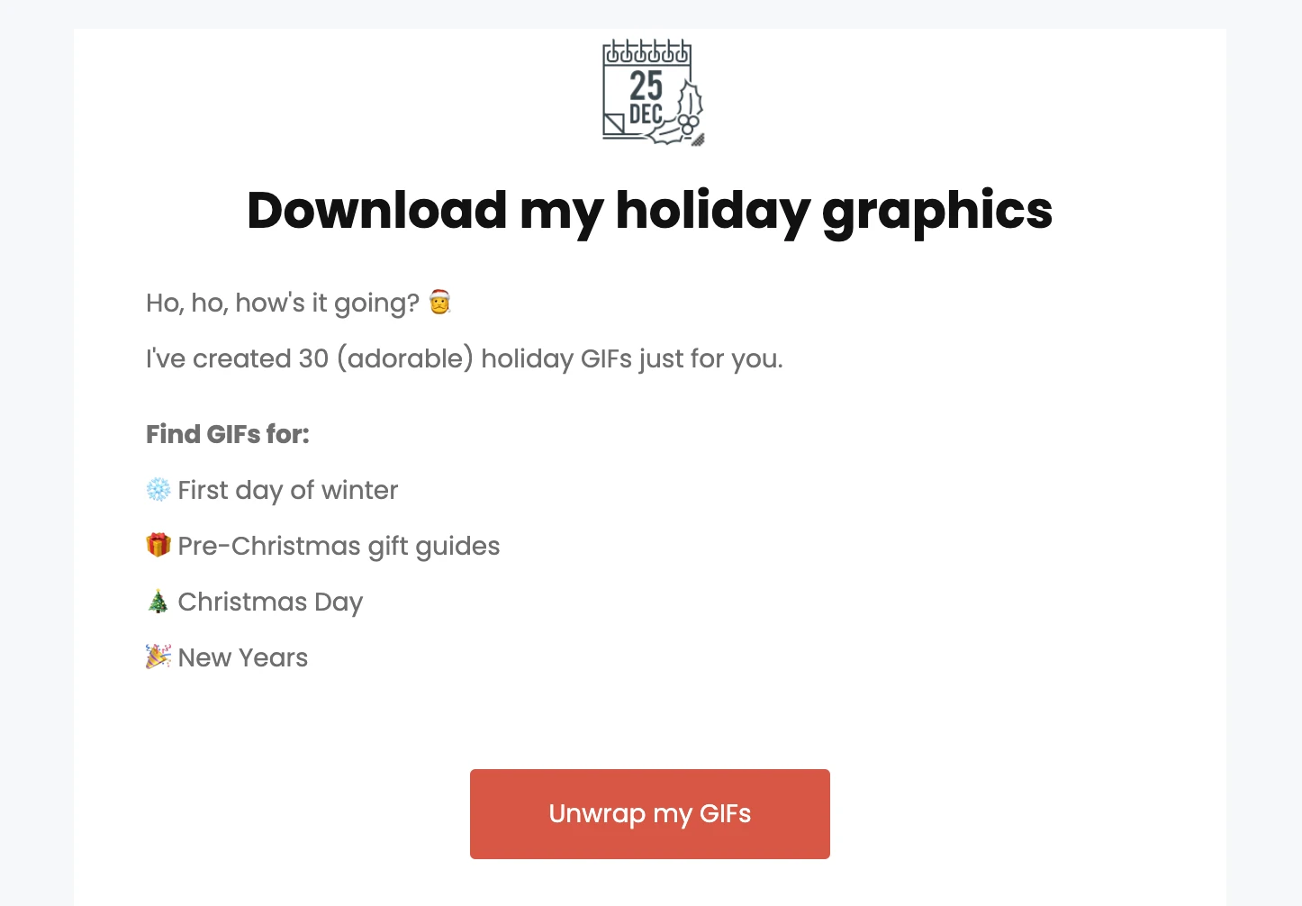 Puedes también aprovechar este email para ofrecer un regalo digital, como una tarjeta de Navidad o un ebook sencillo pero útil para tu audiencia, sin esperar nada a cambio.
