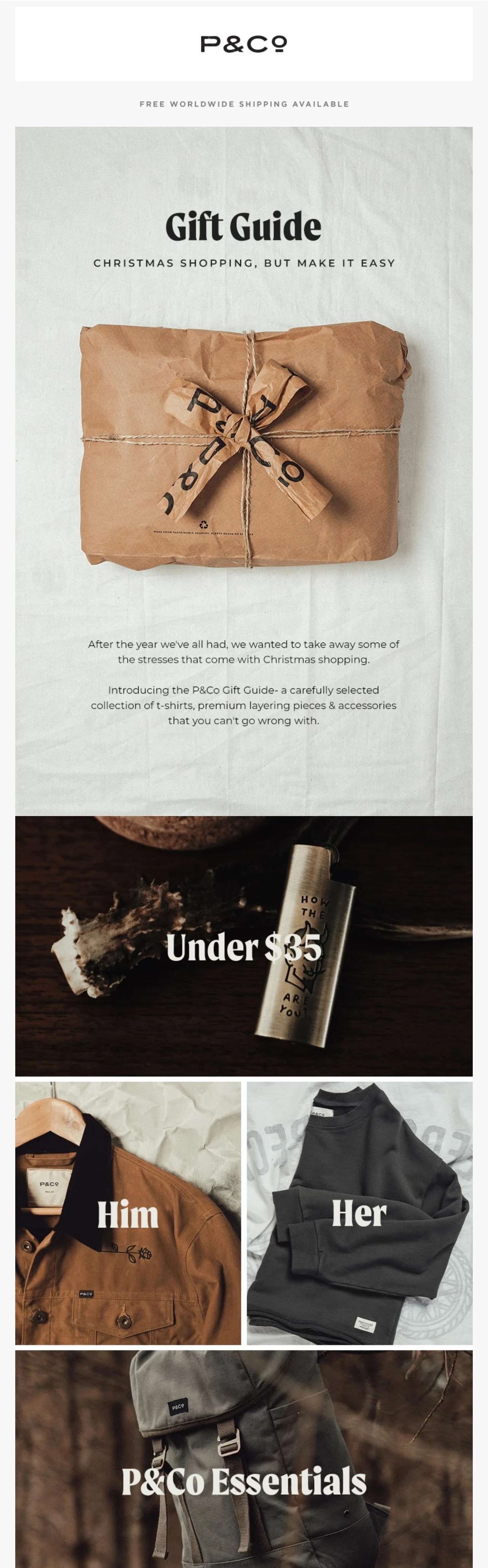 Se trata de un correo electrónico de Navidad emocional que ayuda a crear un vínculo fuerte con tus compradores.