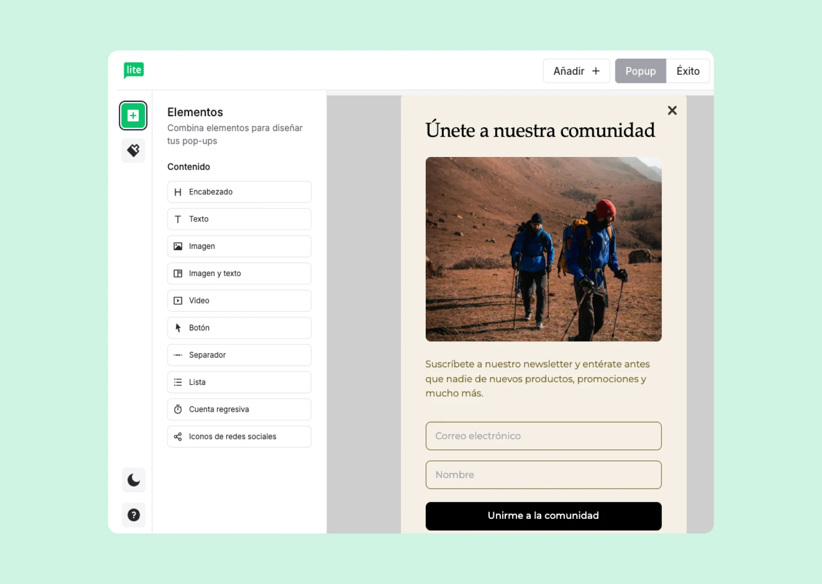 Las ventanas emergentes, o pop-ups, son una forma sencilla de hacer llegar tu mensaje a más visitantes del sitio web. Con nuestra última actualización, crear pop-ups impactantes que estén alineadas con tu marca es más gratificante que nunca.
